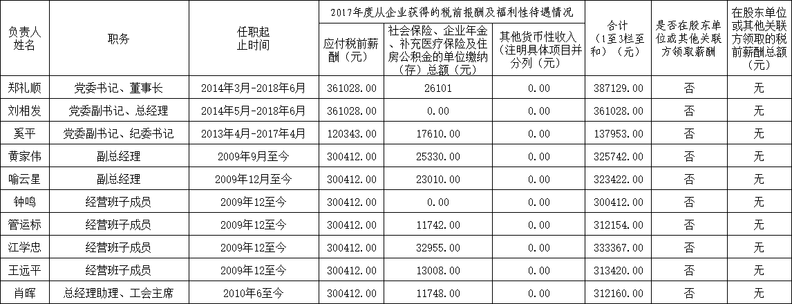 根據(jù)《市屬企業(yè)負責人薪酬信息披露辦法》,現(xiàn)將本企業(yè)負責人2017年度薪酬情況披露如下: